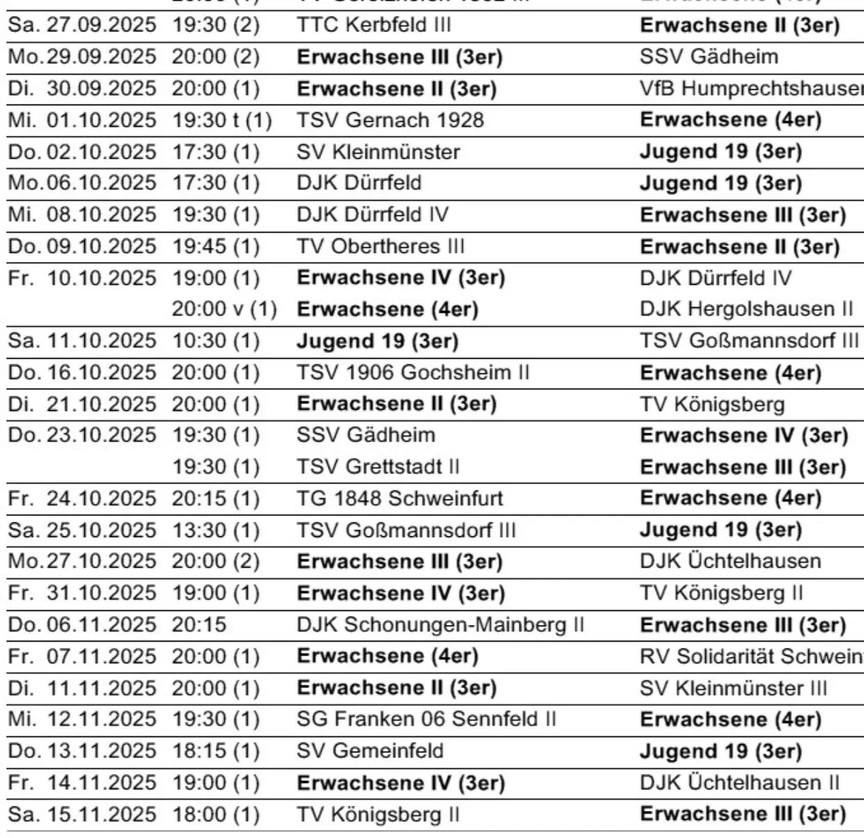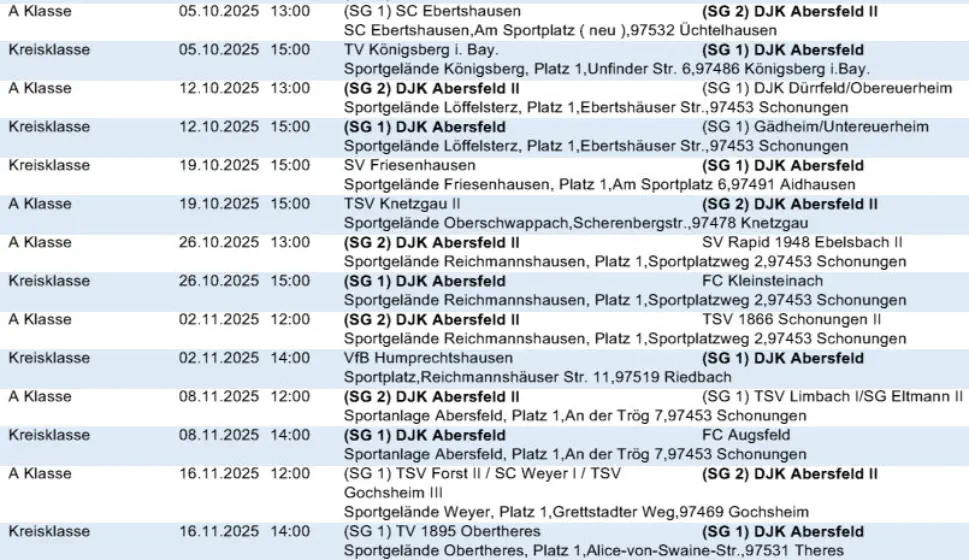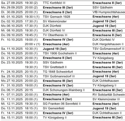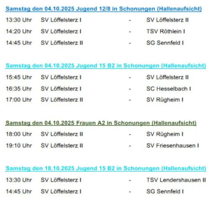 Die nächsten Spiele der Fussballmannschaft