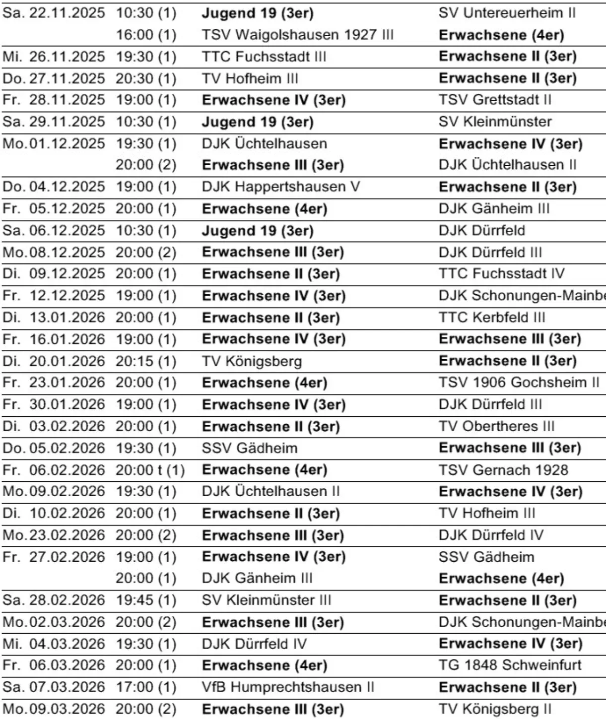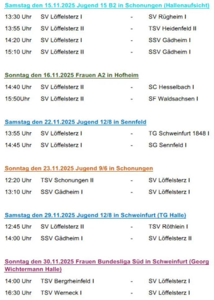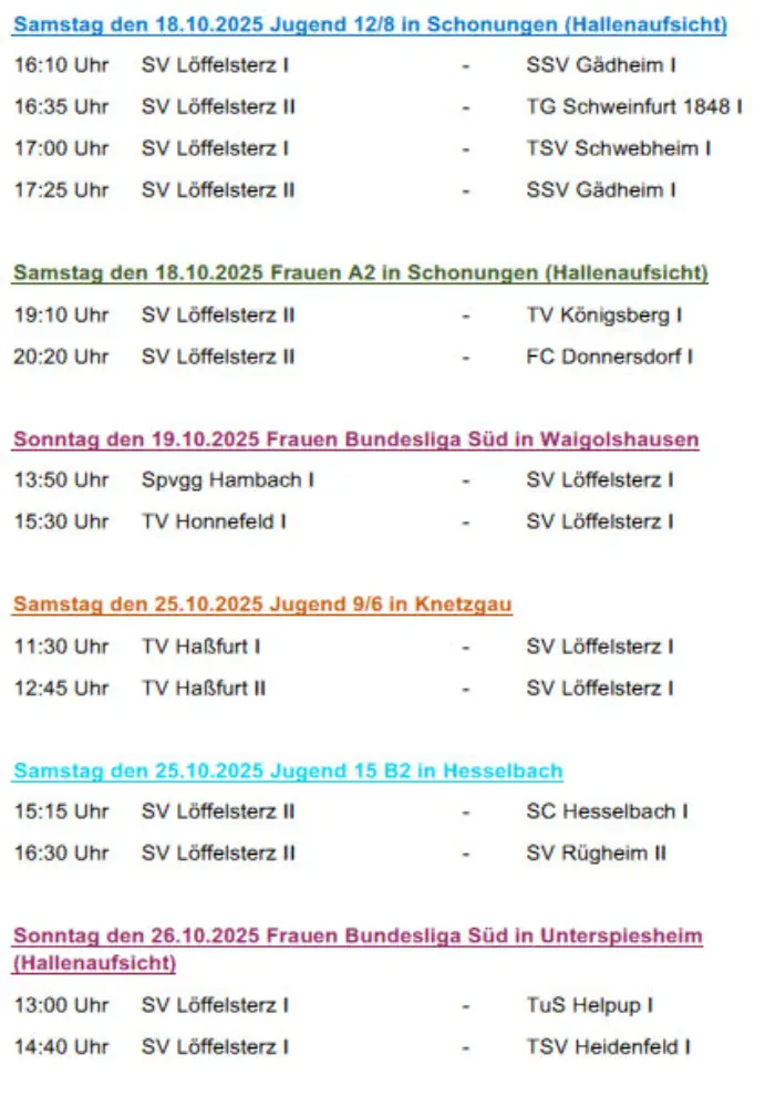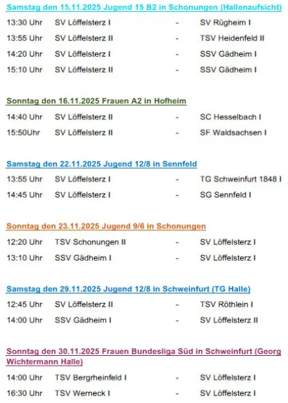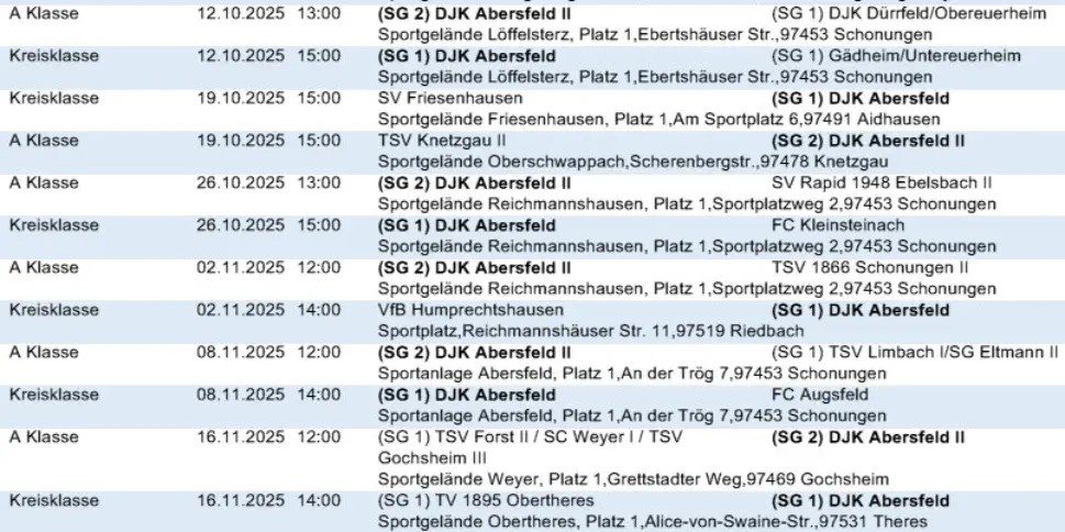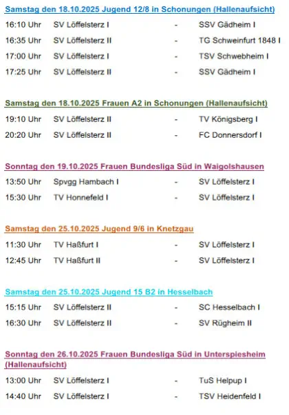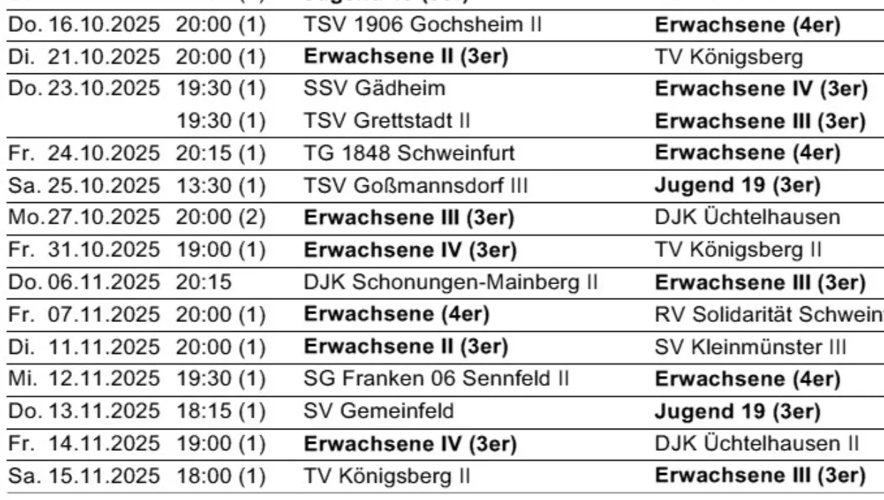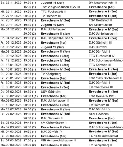 Die nächsten Spiele der Fussballmannschaft