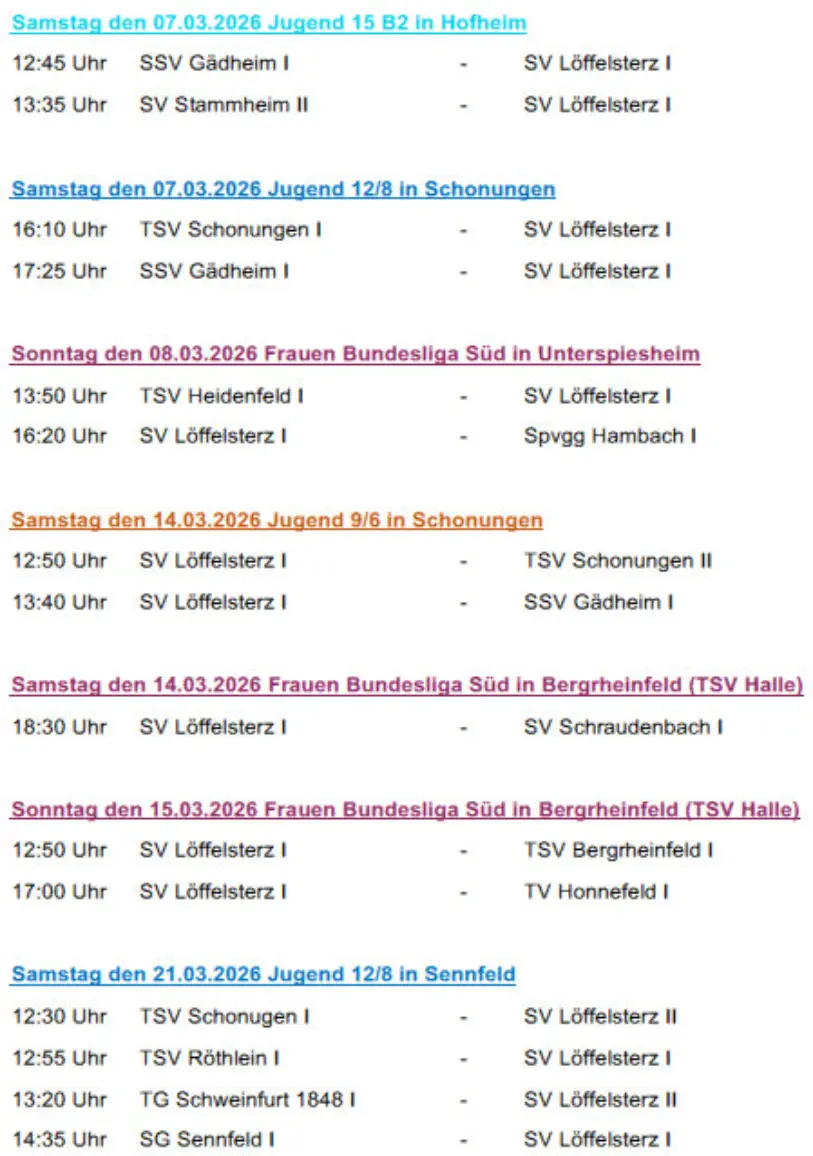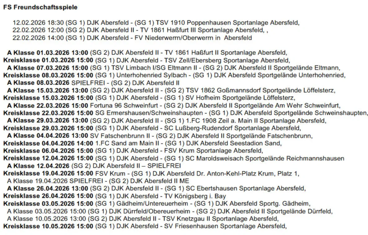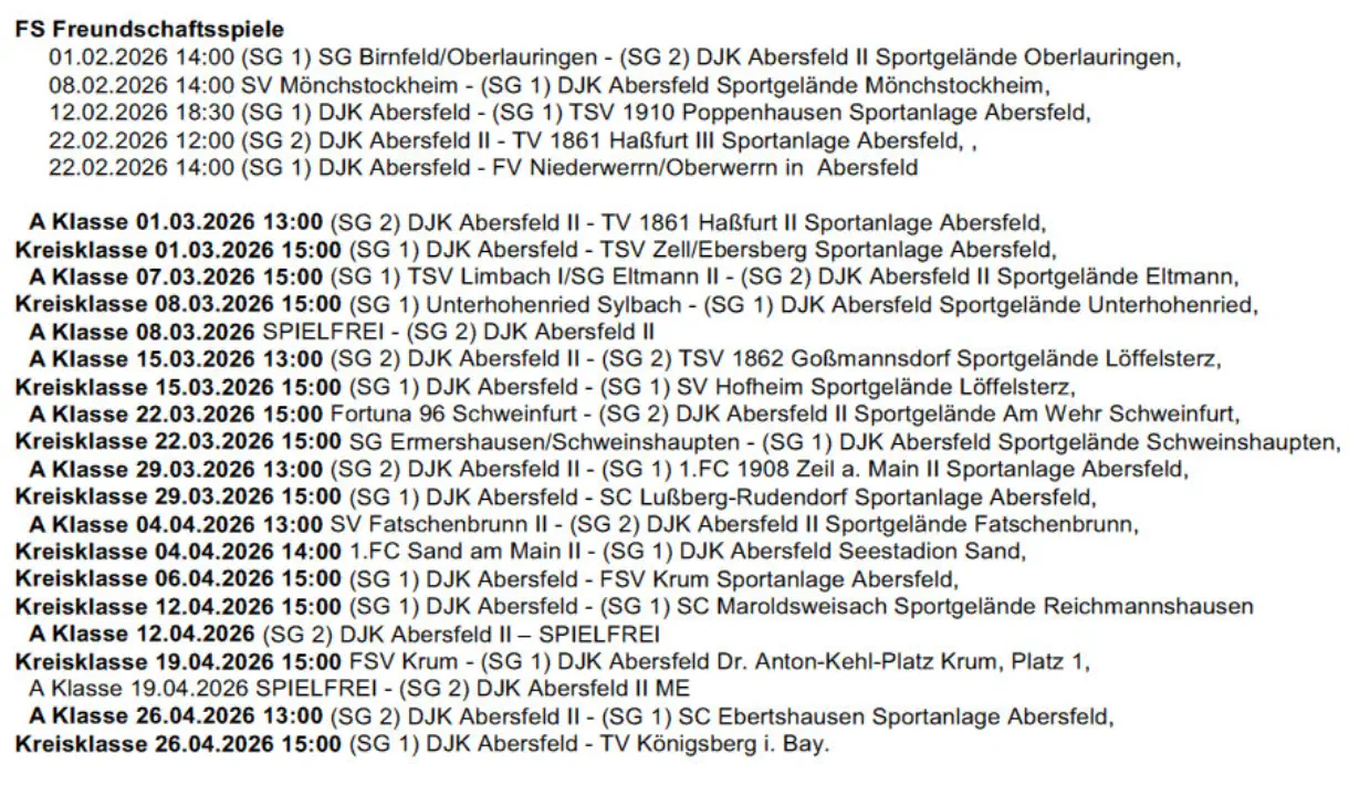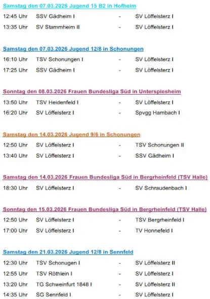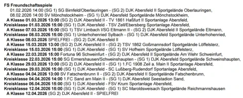 Die nächsten Spiele der Fussballmannschaft