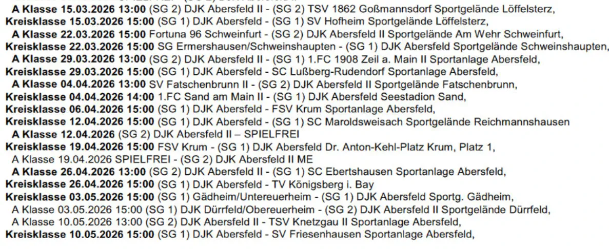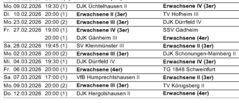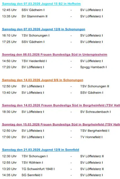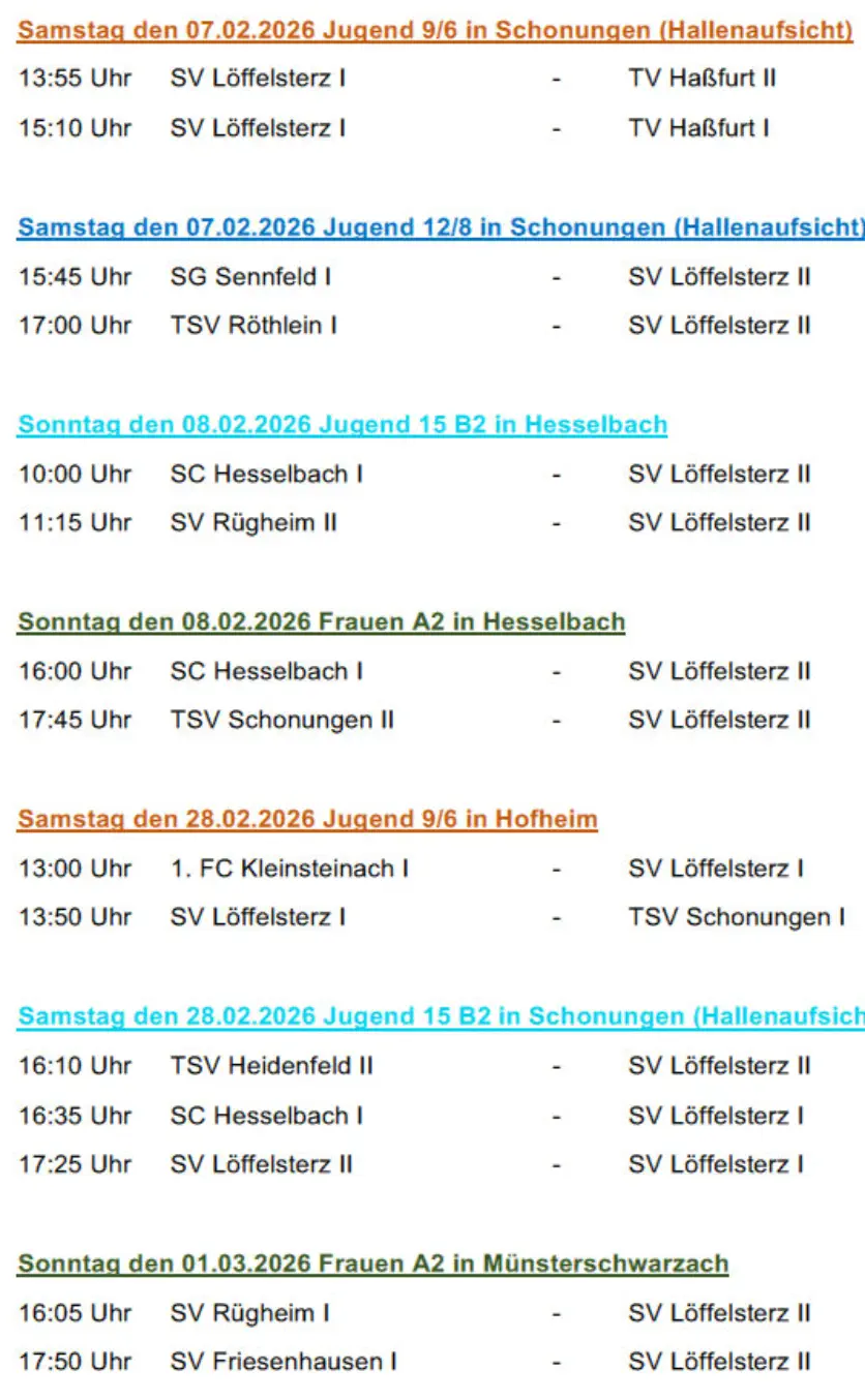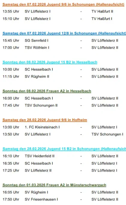 Die nächsten Spiele der Fussballmannschaft