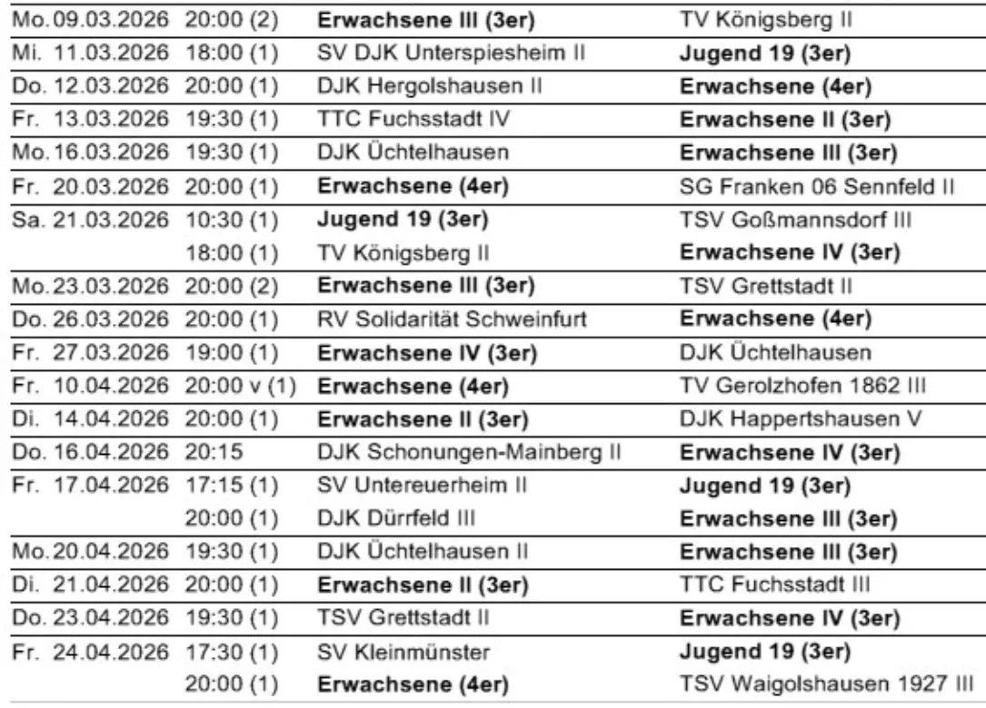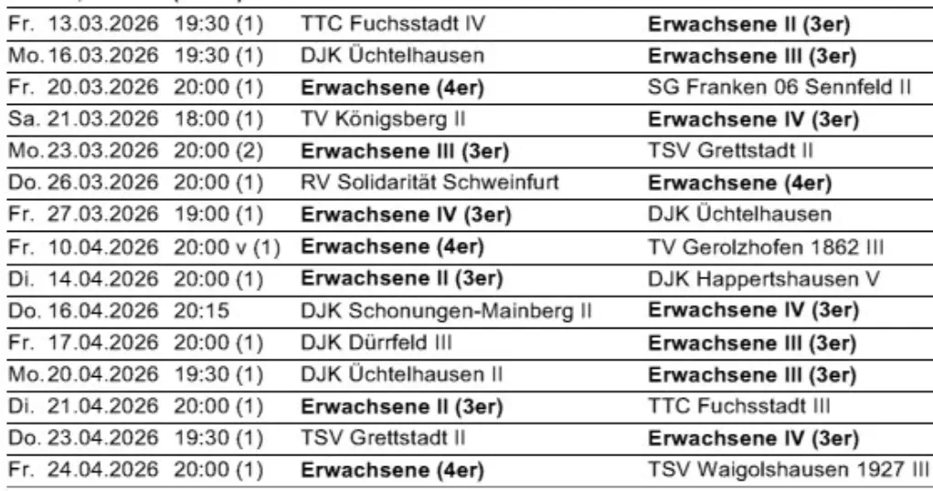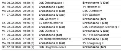 Tischtennistabellen 25/26